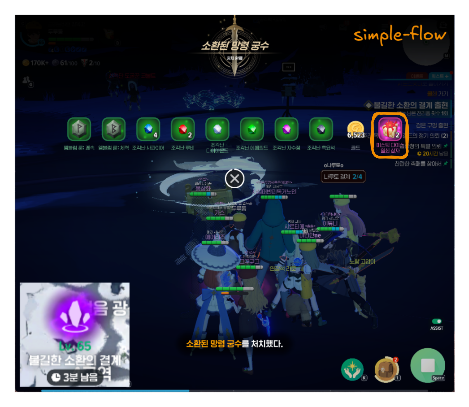 - 낮은 난이도에 입장할 경우 미스틱 '미스틱 다이스 열쇠 상자'가 나오지 않을 수도 있습니다!