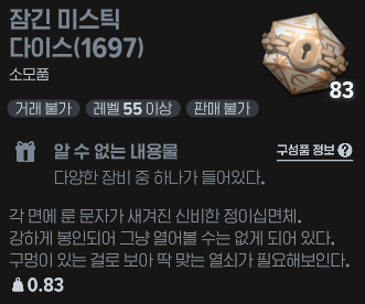 💡 '미스틱 다이스 열쇠'는 '잠긴 미스틱 다이스(1697)'를 위해 아껴두는 것이 좋습니다.