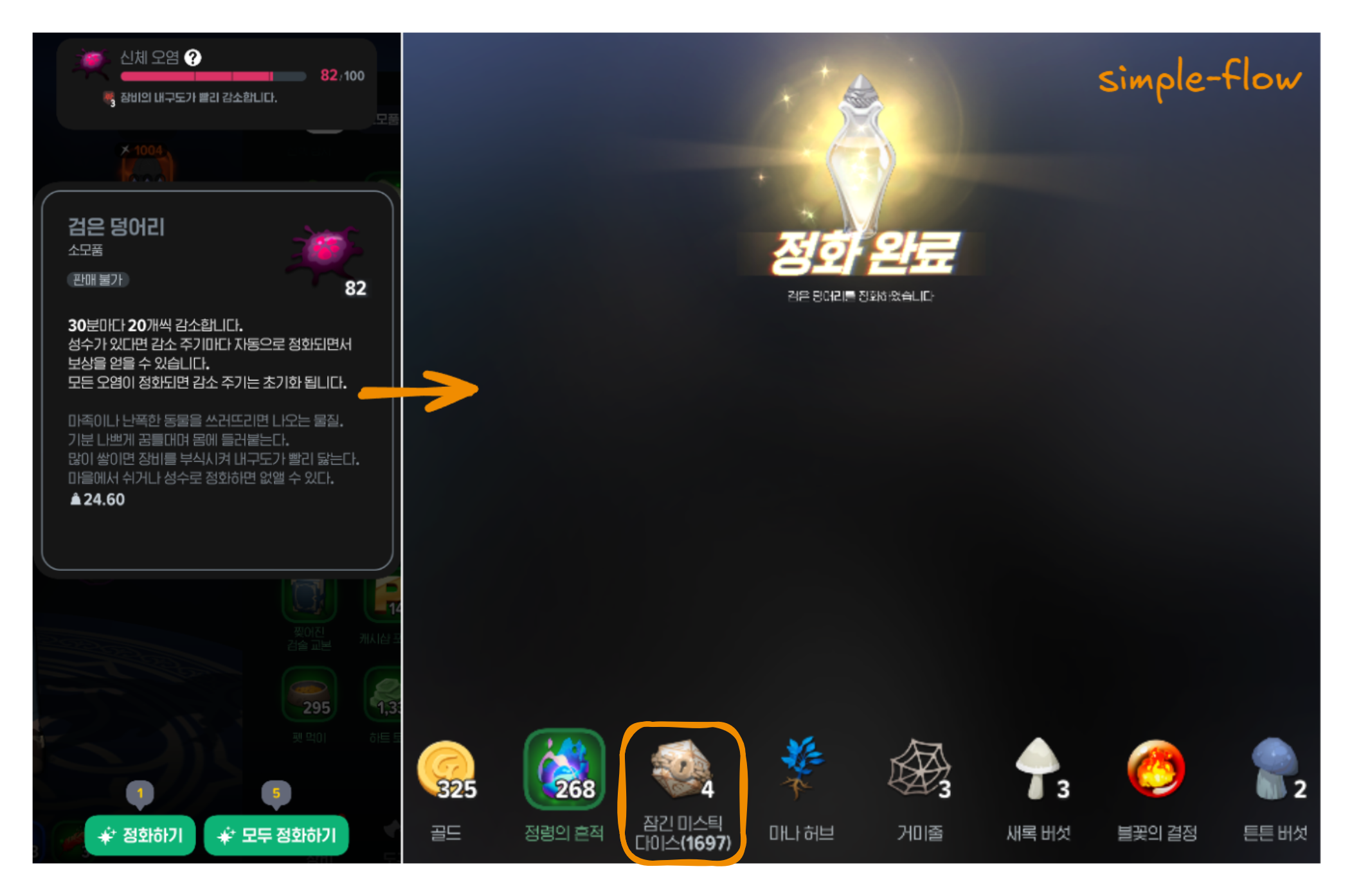 - 65레벨 달성 후 ‘검은 덩어리’ 정화